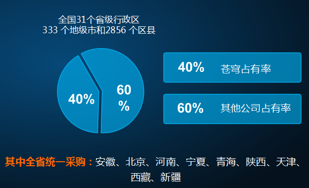 同時(shí),“二調(diào)”時(shí)期,蒼穹數(shù)碼成為全國唯一一家在自主平臺(tái)和國外平臺(tái)均通過測評(píng)的公司,系列軟件產(chǎn)品在國內(nèi)廣泛應(yīng)用,其中安徽、北京、河南、寧夏、青海、陜西、天津、西藏、新疆等地,全省統(tǒng)一采購,公司市場占有率達(dá)40%。