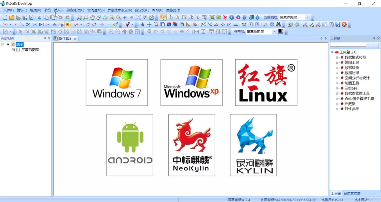 跨平臺軟件技術(shù)包括多個方面,能實(shí)現(xiàn)應(yīng)用程序在多個平臺下運(yùn)行,提高軟件的重用性。KQGIS Desktop利用跨平臺GIS技術(shù),實(shí)現(xiàn)了對多種國內(nèi)外操作系統(tǒng)(Windows、Linux、UNIX、Android等)和CPU架構(gòu)(x86、ARM、MIPS等)的支持。
