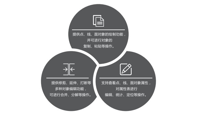 支持符號化繪制模式,同時獨(dú)創(chuàng)弦線繪制模式,相比其他GIS平臺,具有繪制效率更高、速度更快的優(yōu)勢,更適宜于數(shù)據(jù)編輯采集;
