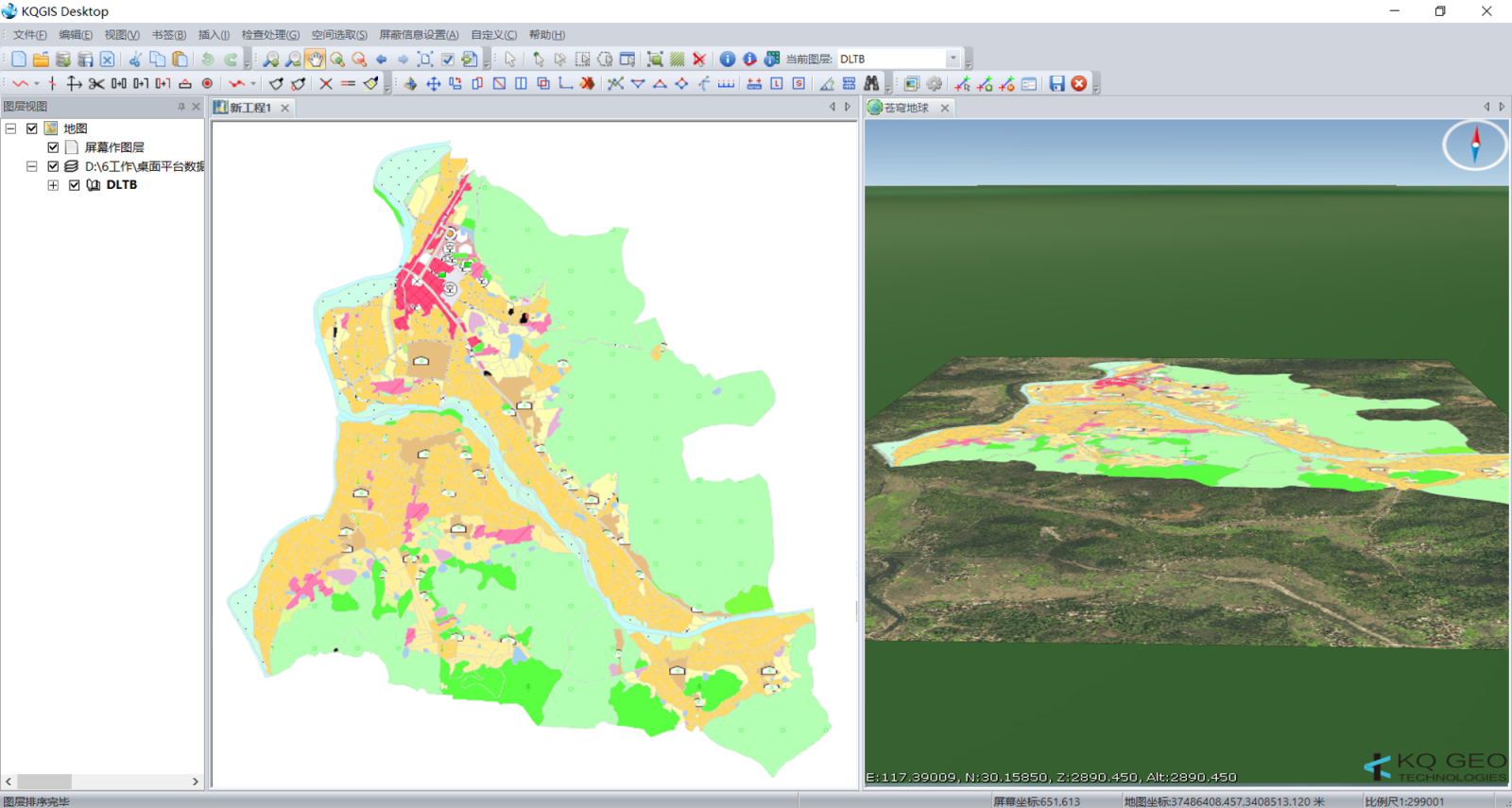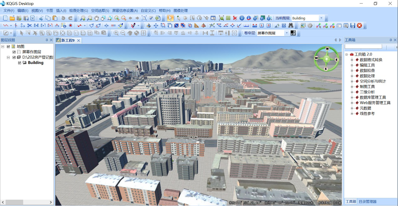 KQGIS Desktop采用二三維一體化技術(shù),將傳統(tǒng)的二維數(shù)據(jù)應(yīng)用延伸到三維精細(xì)化管理,從底層數(shù)據(jù)建設(shè)到上層業(yè)務(wù)應(yīng)用全面覆蓋,實(shí)現(xiàn)了數(shù)據(jù)、場景管理、操作、服務(wù)、可視化、分析等方面的二三維一體化,同時融入了傾斜攝影、BIM、激光點(diǎn)云等三維技術(shù),實(shí)現(xiàn)了從地上地下一體化、空中與地表一體化到室內(nèi)與室外一體化、宏觀與微觀一體化的深入發(fā)展和轉(zhuǎn)變。
