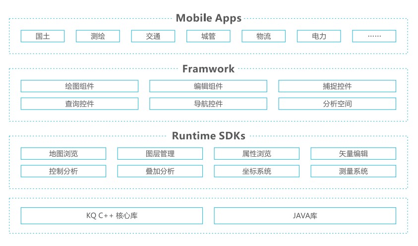 KQGIS Mobile可以分為Runtime SDKs(二次開發(fā)包)和Mobile Apps(移動應用)。