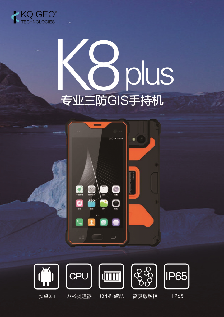 K8 plus專(zhuān)業(yè)三防GIS手持機(jī)配備了安卓8.1系統(tǒng)、八核處理器,可續(xù)航待機(jī)18個(gè)小時(shí),具有高靈敏觸控、IP65等優(yōu)良特性。