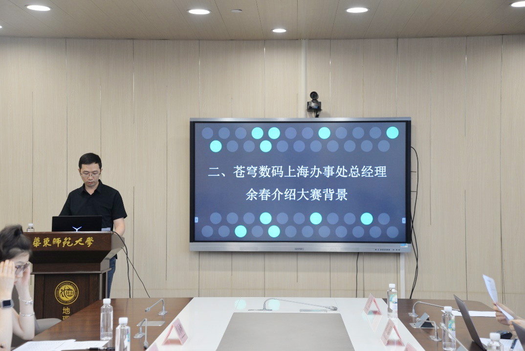 首先,華東師范大學(xué)地理科學(xué)學(xué)院黨委副書記羅藝致歡迎詞,并對參與評審的各位專家、領(lǐng)導(dǎo),為此精心籌備的各參賽小組,以及提供智慧校園建設(shè)與支持的蒼穹數(shù)碼表示由衷感謝。