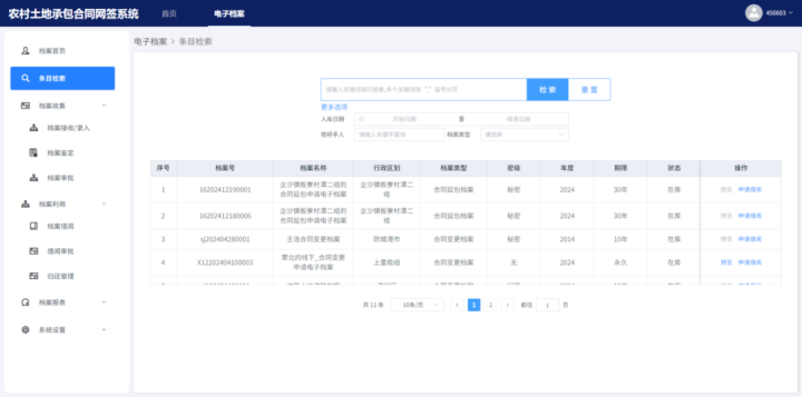 在國家戰(zhàn)略的宏偉藍(lán)圖下,蒼穹數(shù)碼土地承包經(jīng)營權(quán)二輪延包系列產(chǎn)品檔案管理系統(tǒng)已上線應(yīng)用,檔案管理系統(tǒng)不僅為政府管理部門提供了科學(xué)決策的重要依據(jù),更為保障電子檔案安全筑起了一道堅(jiān)實(shí)的防線。