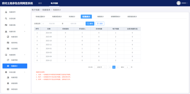 系統(tǒng)還能根據(jù)行政區(qū)劃和檔案類別對各類檔案資料進(jìn)行統(tǒng)計(jì)分析,生成直觀多樣的數(shù)據(jù)報(bào)表,幫助管理者清晰掌握省市縣鄉(xiāng)村等各級行政區(qū)劃內(nèi)二輪延包檔案資料情況,為領(lǐng)導(dǎo)的科學(xué)決策和布局提供有力支撐。