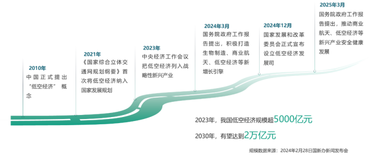 2025 年,中央一號(hào)文件首提 “低空經(jīng)濟(jì)”,明確提出 “支持發(fā)展智慧農(nóng)業(yè),拓展人工智能、數(shù)據(jù)、低空等技術(shù)應(yīng)用場(chǎng)景”。隨后在3月5日召開的第十四屆全國(guó)人民代表大會(huì)第三次會(huì)議上,國(guó)務(wù)院總理李強(qiáng)在政府工作報(bào)告中進(jìn)一步擘畫產(chǎn)業(yè)發(fā)展藍(lán)圖,提出要開展新技術(shù)新產(chǎn)品新場(chǎng)景大規(guī)模應(yīng)用示范行動(dòng),推動(dòng)商業(yè)航天、低空經(jīng)濟(jì)等新興產(chǎn)業(yè)安全健康發(fā)展。