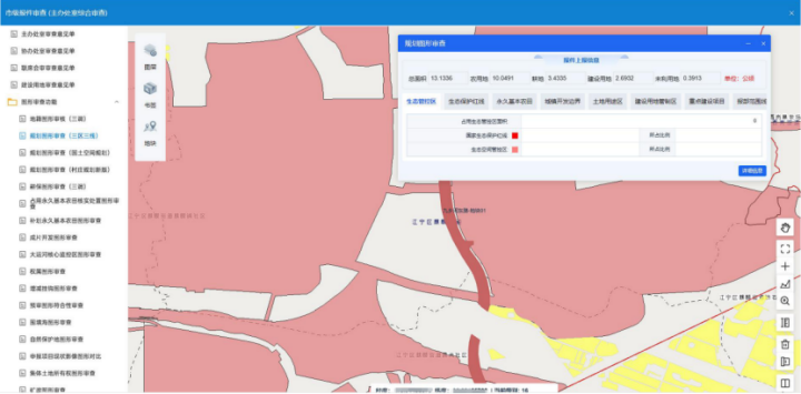 針對(duì)項(xiàng)目申報(bào)多補(bǔ)正、有退件的問(wèn)題,沿用江蘇省建設(shè)用地審批系統(tǒng)中的帶圖審批能力,省市縣三級(jí)部門依托統(tǒng)一的底圖開(kāi)展業(yè)務(wù)審批工作,并將一鍵圖審功能、業(yè)務(wù)審查功能前置至縣、區(qū)組卷階段,實(shí)現(xiàn)在報(bào)件組卷環(huán)節(jié)即可分析審查報(bào)批地塊是否存在規(guī)劃沖突、占用生態(tài)管控空間、占用永久基本農(nóng)田等問(wèn)題,通過(guò)技術(shù)性輔助審查前置減少后續(xù)補(bǔ)正、退件的耗時(shí)。并同步建立圖形審查結(jié)果緩存機(jī)制,系統(tǒng)自動(dòng)存儲(chǔ)管理前序?qū)徍谁h(huán)節(jié)的圖形審查結(jié)果,當(dāng)流轉(zhuǎn)到后續(xù)廳局領(lǐng)導(dǎo)審核節(jié)點(diǎn)時(shí)可直接調(diào)取前序圖審結(jié)果,無(wú)需重復(fù)分析,從而提升審批效率。