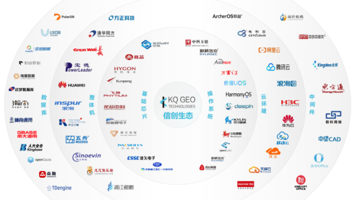 基于自主研發(fā)的跨平臺(tái)GIS內(nèi)核技術(shù),KQGIS構(gòu)建了全場景覆蓋的GIS基礎(chǔ)軟件及應(yīng)用生態(tài),實(shí)現(xiàn)從國產(chǎn)操作系統(tǒng)、數(shù)據(jù)庫到云環(huán)境的全鏈路兼容能力。KQGIS采用標(biāo)準(zhǔn)C++語言,構(gòu)建了最關(guān)鍵的GIS內(nèi)核(KQGIS Core),實(shí)現(xiàn)了底層算法、數(shù)據(jù)的統(tǒng)一。在桌面端,采用跨平臺(tái)的QT進(jìn)行界面開發(fā),實(shí)現(xiàn)一套代碼跨不同平臺(tái)。在WEB端,采用JavaScript進(jìn)行網(wǎng)頁開發(fā),不依賴于操作系統(tǒng)。此外,完成了與國產(chǎn)整機(jī)、云環(huán)境、CPU、GPU等硬件環(huán)境以及操作系統(tǒng)、數(shù)據(jù)庫、中間件、辦公軟件等軟件環(huán)境的全面適配。從而形成了基于KQGIS的跨平臺(tái)解決方案(信創(chuàng)GIS替代/升級(jí)方案)。
