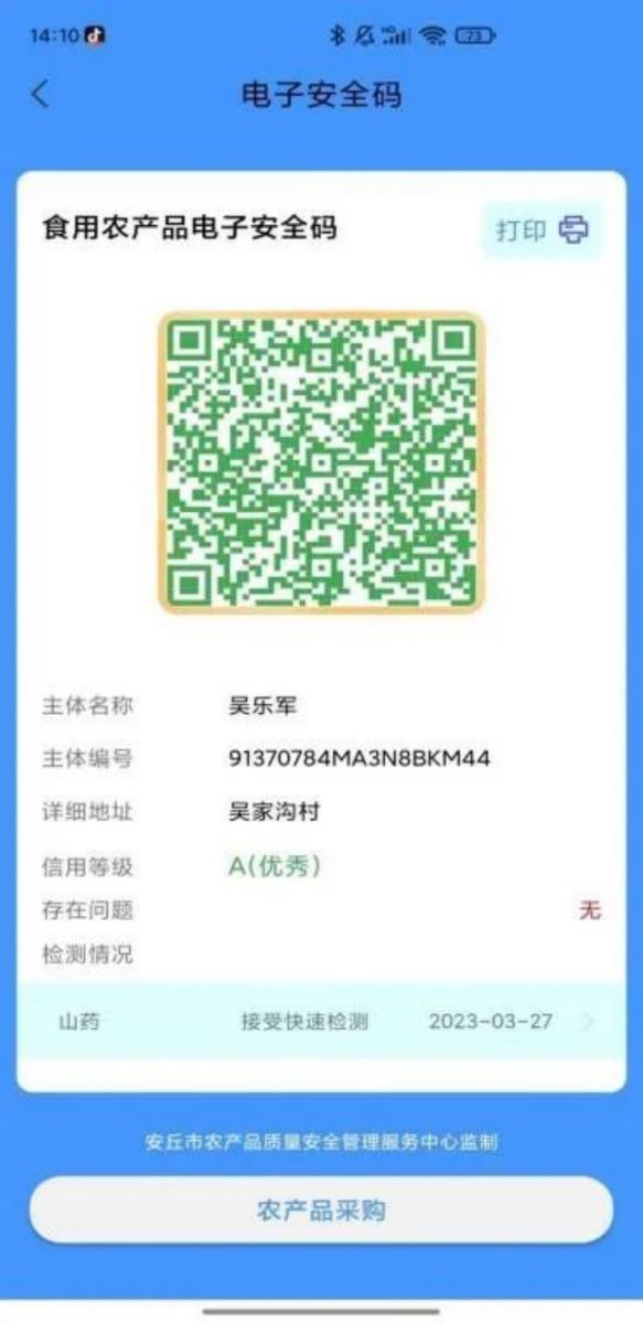 此外,平臺(tái)還高效賦能農(nóng)產(chǎn)品安全的全社會(huì)監(jiān)督,其創(chuàng)新應(yīng)用食用農(nóng)產(chǎn)品“電子安全碼”,建立政府、社會(huì)跨界協(xié)同合作機(jī)制,賦予每個(gè)種、產(chǎn)、銷主體“數(shù)字身份證”,包含種植、交易、檢測(cè)、信用等信息,通過買方掃碼監(jiān)督賣方,變傳統(tǒng)政府單一監(jiān)管為社會(huì)多元共治。