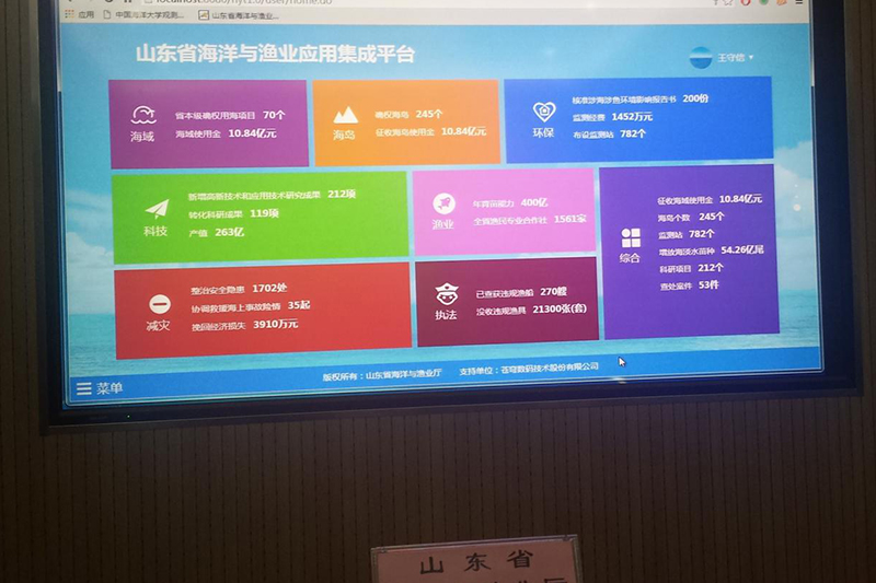 由蒼穹數(shù)碼技術(shù)股份有限公司承建的山東省海洋與漁業(yè)應(yīng)用集成平臺作為山東省海洋與漁業(yè)廳主要信息化建設(shè)成果在會上做了匯報,并展示了該平臺的日常辦公、單點登錄、決策支持三個版塊,取得了相關(guān)領(lǐng)導(dǎo)的一致認(rèn)可。