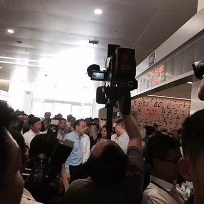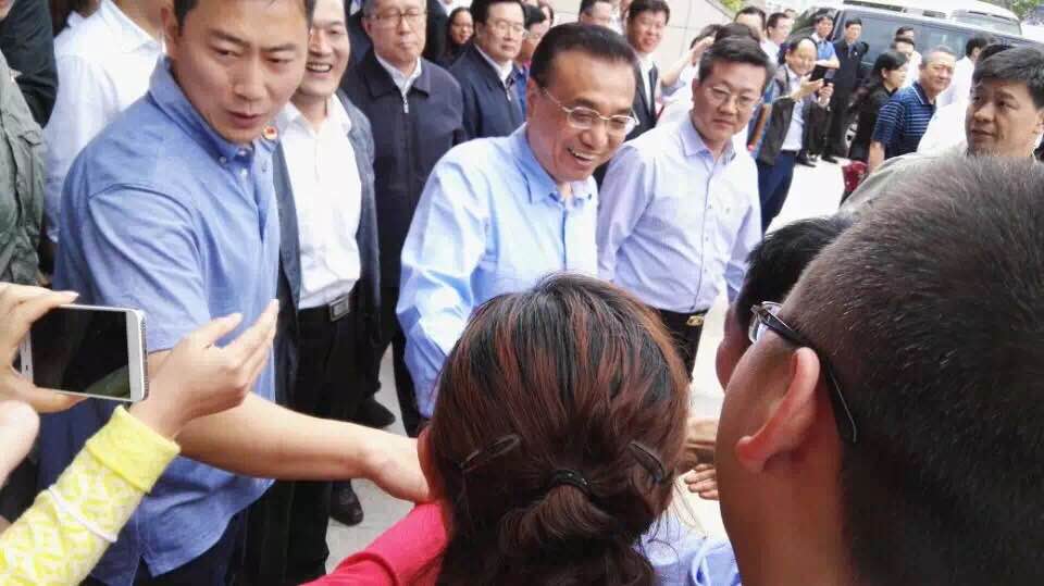 在省政府領(lǐng)導(dǎo)的陪同下,李克強(qiáng)總理臉上掛著親切的笑容走進(jìn)大廳,與工作人員握手,揮手示意。當(dāng)場(chǎng)蒼穹數(shù)碼的“攻城獅”、“程序猿”興奮地掏出手機(jī),拍攝了許多現(xiàn)場(chǎng)照片。