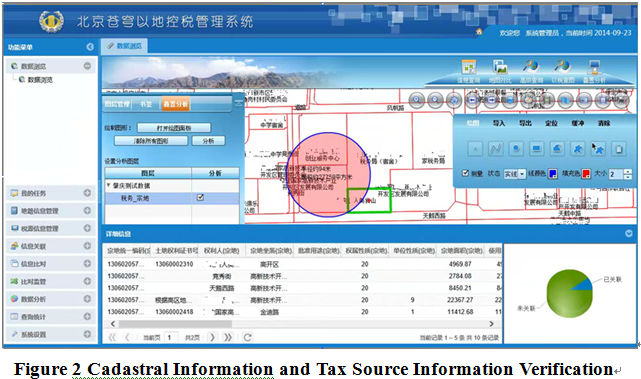 Verifying and comparing urban cadastral parcel land information and urban land use tax source information, KQ Land-based Tax Controlling Management System achieves “land-based tax controlling, and information-based tax managing”.