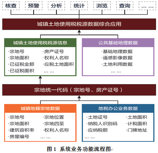 By building a complete database of urban land use tax source, the system realizes data sharing between land resources urban cadastral parcel land information and property ownership registration information.