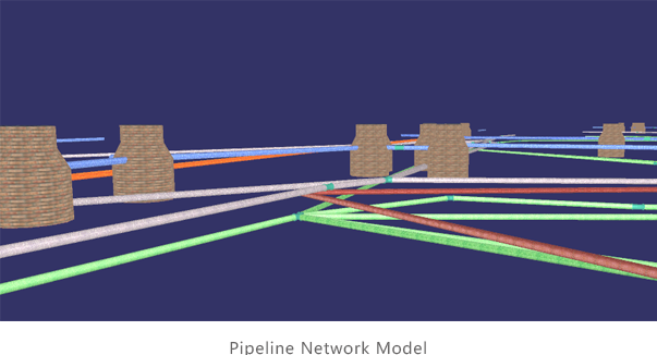 3D pipeline models can be batch generated automatically from vector data based on program rules. Even the most complex pipeline network junction point can be processed perfectly.
